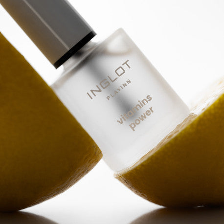 INGLOT PLAYINN Vitamins Power Nail Conditioner är en stärkande formula som hjälper till att minska nagelplattans skörhet. Så många som 90 % av deltagarna bekräftade att produkten stärker tunna naglar*, och 95 % uppgav att den återställer släthet och glans*. Dess transparenta formula kan användas som baslack, vilket ger både skydd mot yttre påverkan och ett friskt utseende. Den är idealisk för tunna, sköra naglar som lätt flisar och går av.*Baserat på applikationstester genomförda på en grupp av 20 deltagare.Fördelar:- Stärker sköra nagelplattor- Minskar nagelbräcklighet- Återställer släthet och glans- Skyddar mot nagelplattans sprickbildning- Säkerställer enkel och precis applicering – strimmelfri finish- Kan användas som baslack- Hjälper till att bibehålla starka naglar- Skapar ett skonsamt skyddslager mot yttre påverkan som rengöringsmedel- Förbättrar nagelplattans tillstånd hos 85 % av testade användare**